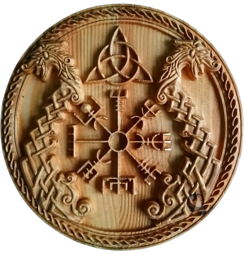Viking borden gemaakt op mijn CNC van douglas hout. De maten zijn 350x350mm en 30mm dik. Het object is ge-olied ter bescherming tegen verkleuring